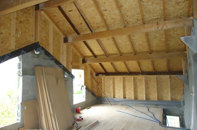 - La charpente pour soutenir le toit et répartir les charges notamment en cas d’intempéries (neige) ;
